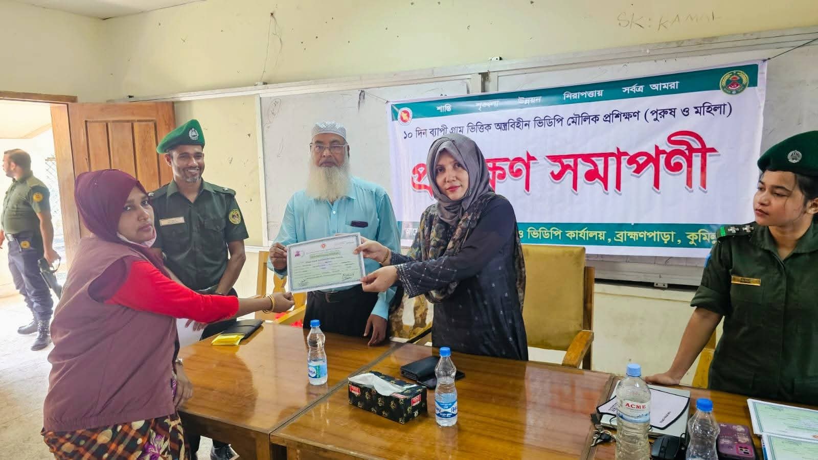 মোশাররফ হোসেন খান চৌধুরী বিশ্ববিদ্যালয় কলেজে অনুষ্ঠিত ১০ দিনব্যাপী গ্রামভিত্তিক অস্ত্রবিহীন ভিডিপি মৌলিক প্রশিক্ষণের সমাপনী দিনে প্রশিক্ষণা