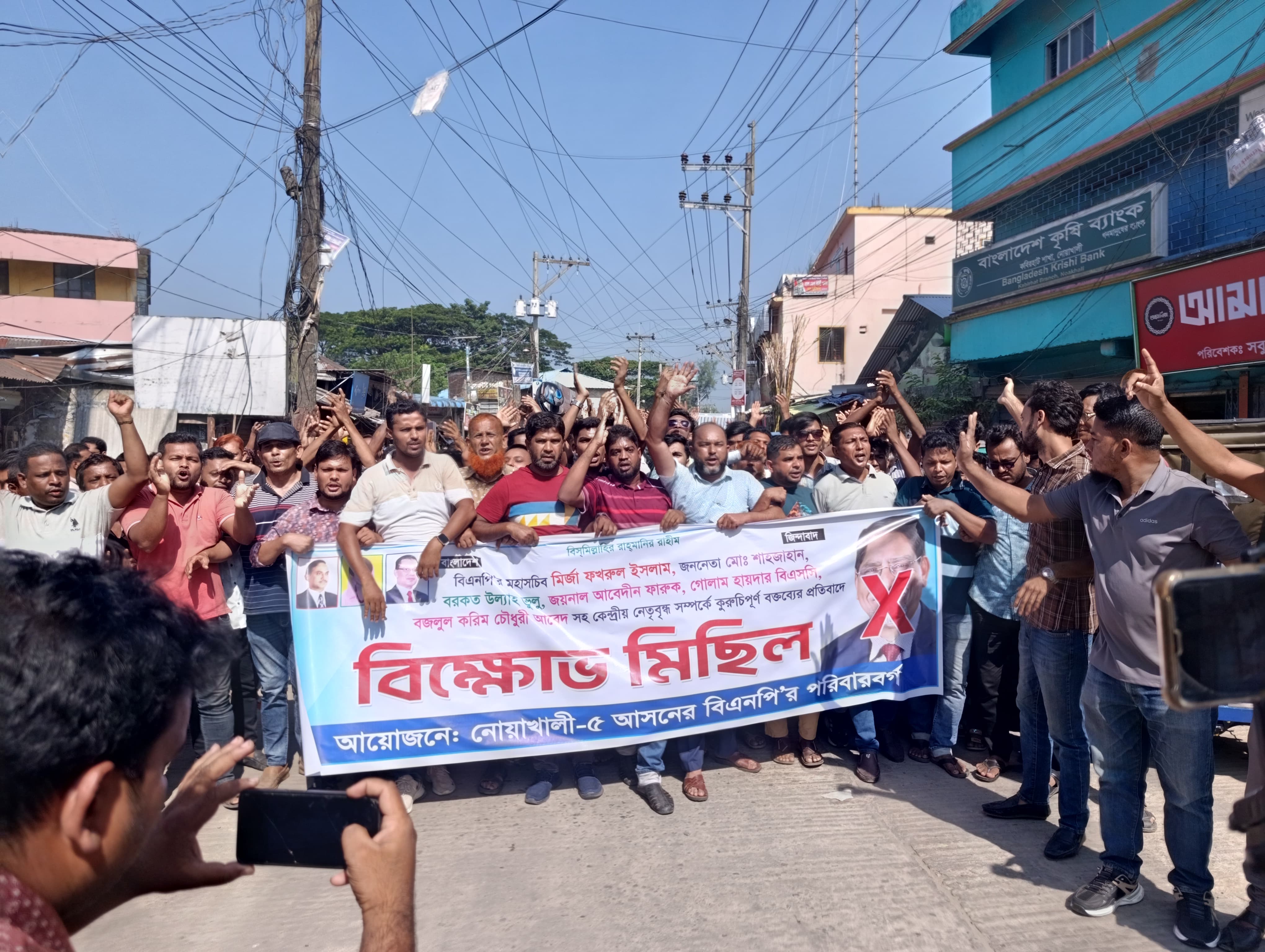 দলের মহাসচিব সহ কেন্দ্রীয় নেতাদের বিরুদ্ধে বিরূপ মন্তব্য প্রতিবাদে নোয়াখালীতে ধানের শীষের প্রার্থী ফখরুলের বিরুদ্ধে বিএনপি নেতাকর্মীদের বিক্ষোভ