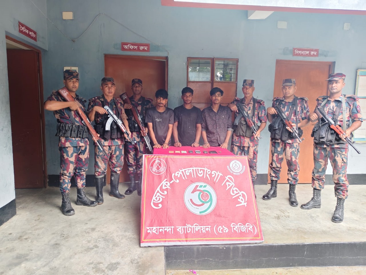 মাহিদুল ইসলাম ফরহাদ চাঁপাইনবাবগঞ্জ জেলা প্রতিনিধি মহানন্দা ব্যাটালিয়ন (৫৯ বিজিবি)-এর অধীনস্থ জেকে পোলাডাংগা বিওপি’র দায়িত্বপূর্ণ এলাকায় অভিযানে তিন বাংলাদেশি চোরাকারবারীকে