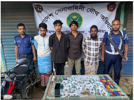 আশুলিয়ার কান্দাইল এলাকায় হতে যৌথ বাহিনীর অভিযানে গাজাসহ ব্যবসায়ী ও ক্রেতা আটক