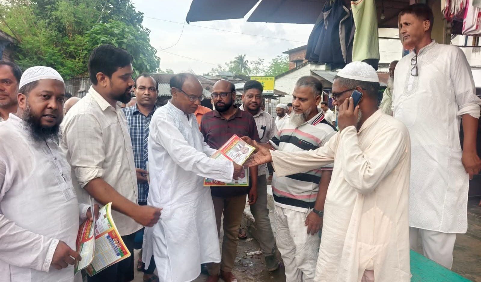 চাঁপাইনবাবগঞ্জে ৩১ দফার লিফলেট বিতরণ ও গণসংযোগ করছেন গোলাম জাকারিয়া