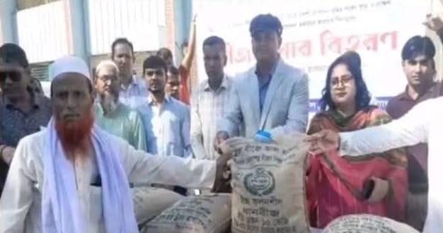 উল্লাপাড়ায় প্রান্তিক কৃষকদের মাঝে বিনামূল্যে সার ও বীজ বিতরণ