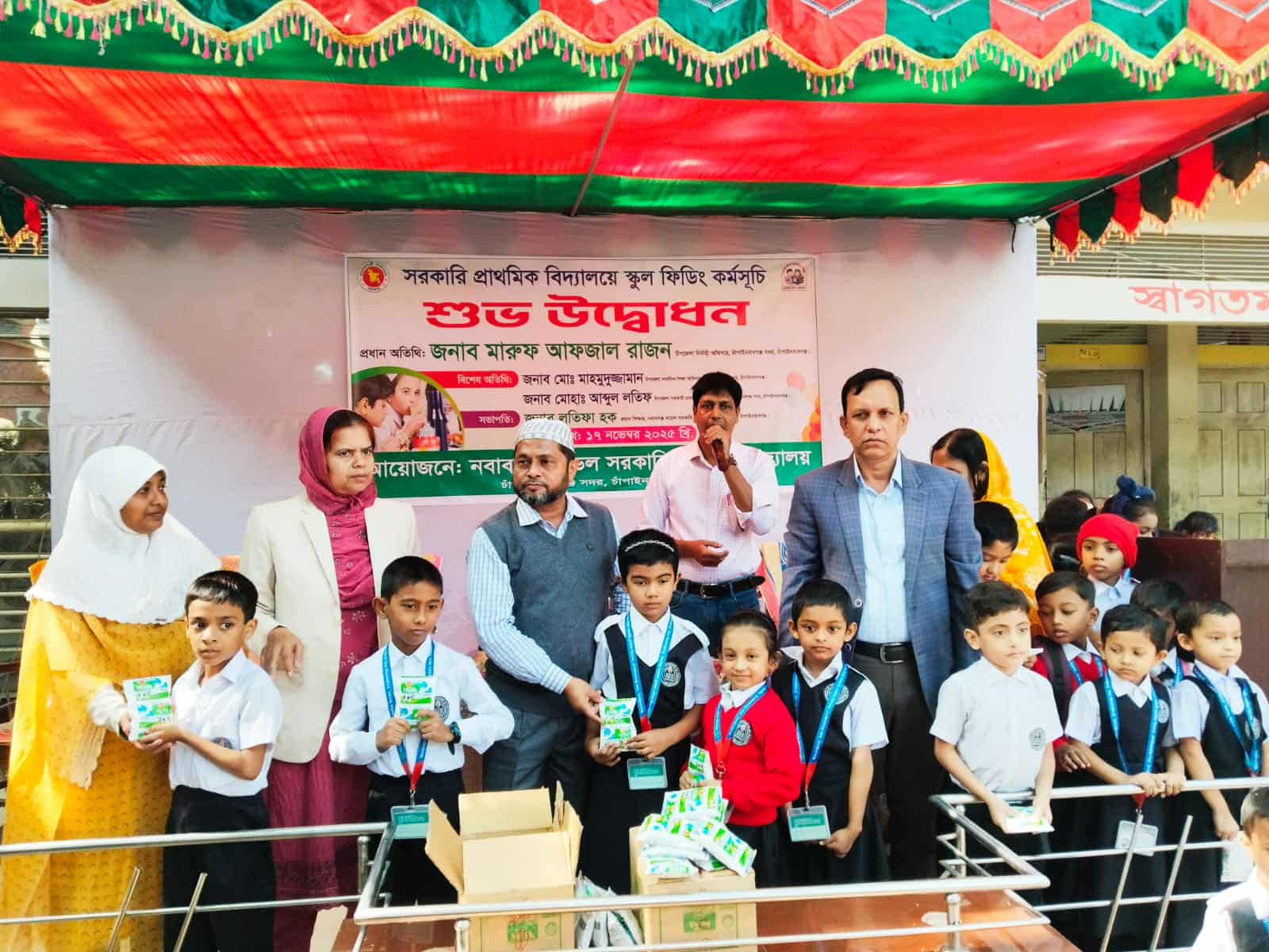 নবাবগঞ্জ মডেল সরকারি প্রাথমিক বিদ্যালয়ে স্কুল ফিডিং কর্মসূচি উদ্বোধন