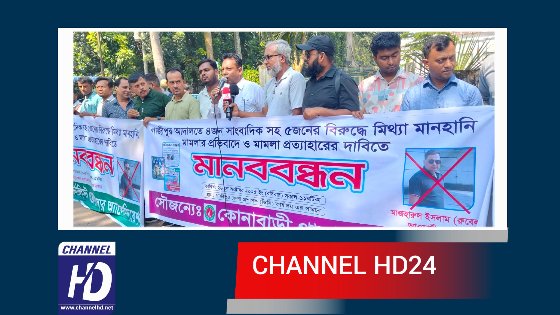 গাজীপুর আদালতে ৩ সম্পাদকসহ ৫ সাংবাদিকের বিরুদ্ধে মানহানি “মিথ্যা” মামলার প্রতিবাদে মানববন্ধন