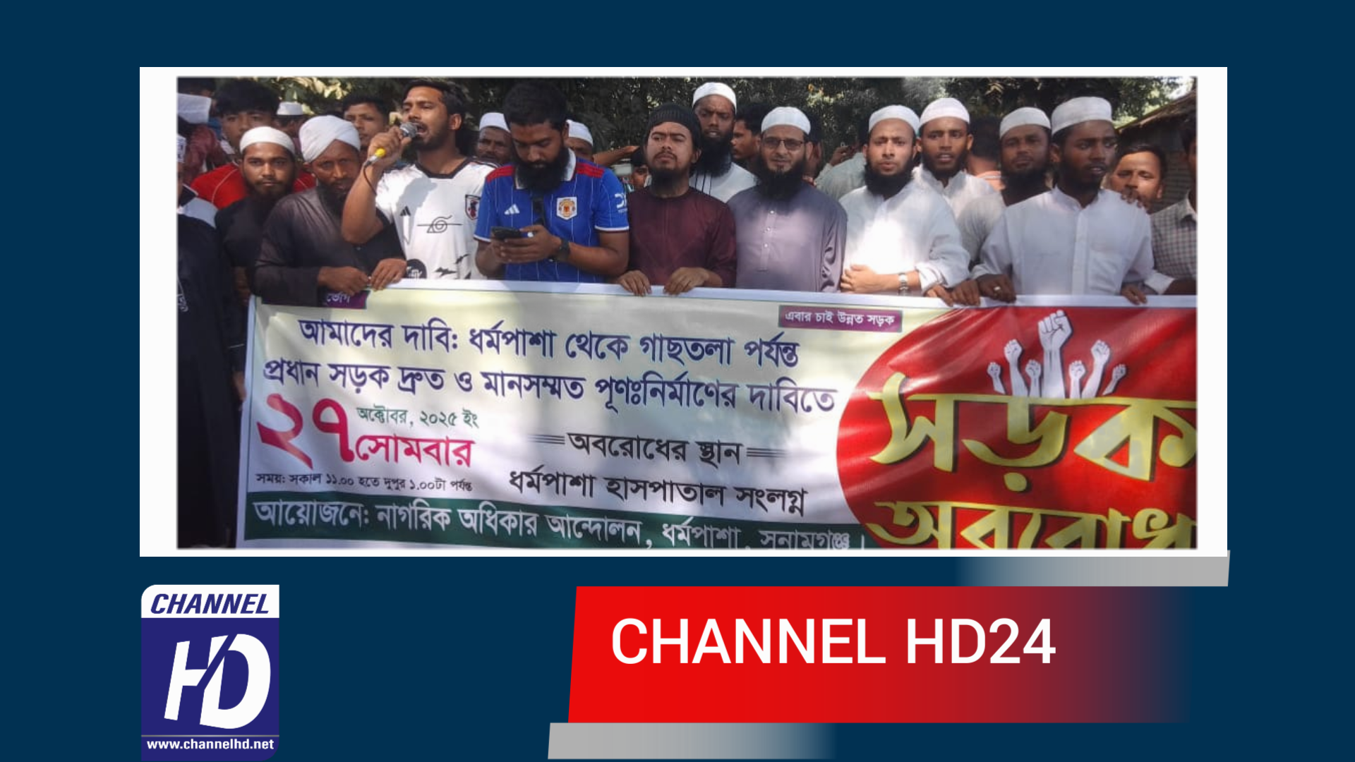ধর্মপাশা থেকে গাছতলা পর্যন্ত রাস্তা পূর্ণ নির্মাণের দাবিতে সড়ক অবরোধ