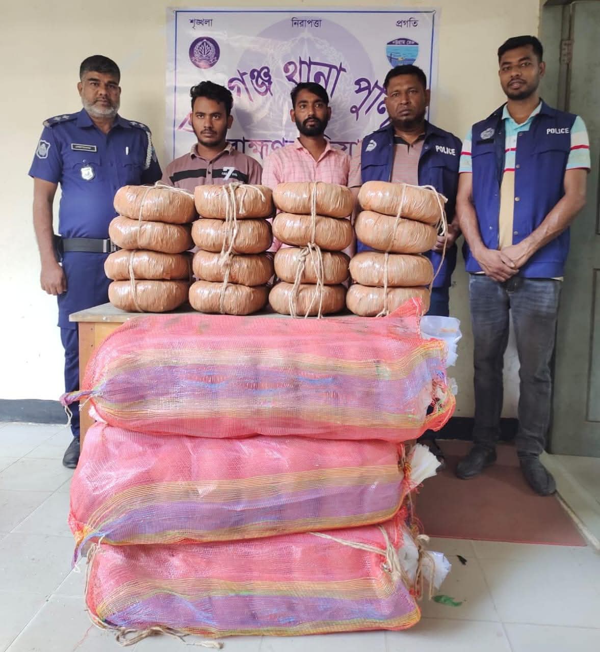 আশুগঞ্জ থানা পুলিশ কর্তৃক ৮০ আশি কেজি গাঁজা উদ্ধার ০২ মাদক কারবারী গ্রেফতার