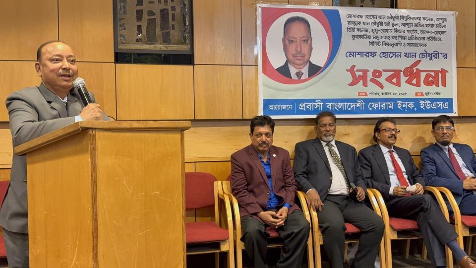 নিউইয়র্কে প্রবাসী বাংলাদেশী ফোরাম ইউএনএ’র উদ্যোগে বিশিষ্ট শিক্ষানুরাগী মোশাররফ হোসেন খান চৌধুরীর সংবর্ধনা