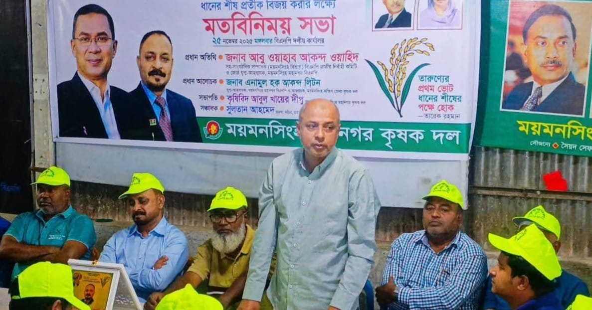 আসন্ন জাতীয় নির্বাচনে ধানের শীষকে বিজয় করার লক্ষ্যে ময়মনসিংহ মহানগর কৃষক দলের মতবিনিময় সভা