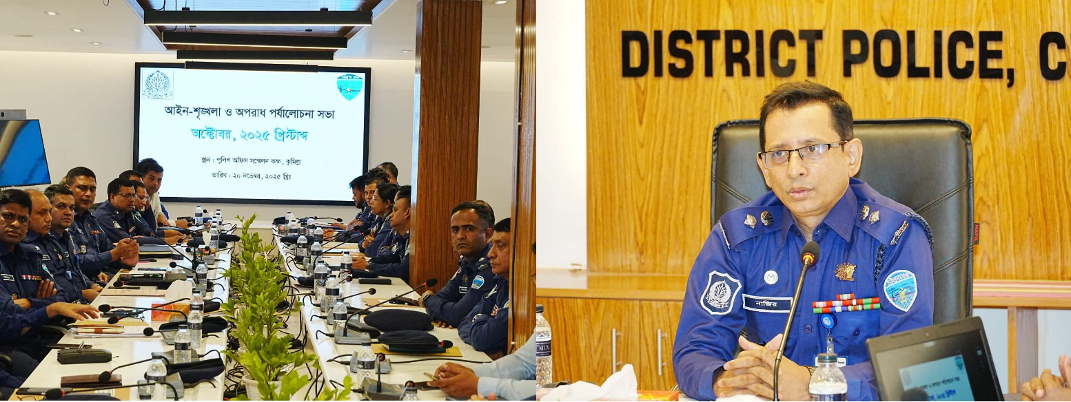 আজ ২০ নভেম্বর ২০২৫ খ্রিঃ কুমিল্লা জেলার পুলিশ সুপারের কার্যালয় সম্মেলন কক্ষে কুমিল্লা জেলা পুলিশের মাসিক অপরাধ পর্যালোচনা সভা অনুষ্ঠিত