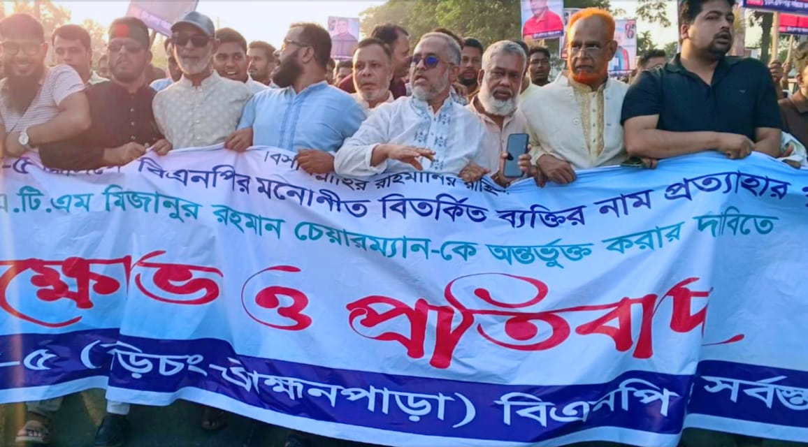 কসবা আখাউড়ায় কাফনের কাপড় পরে বিএনপির গণসমাবেশ: প্রার্থী পরিবর্তনের দাবি